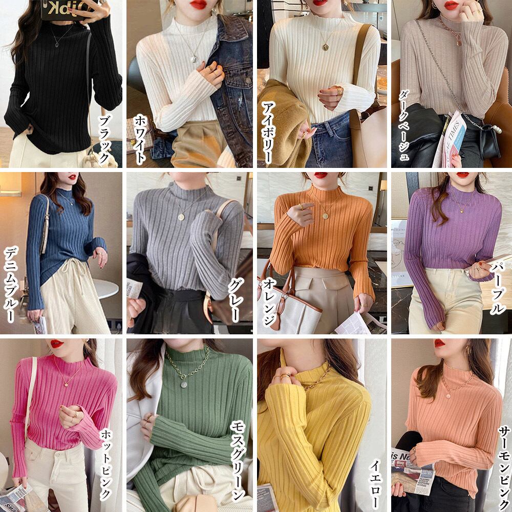 コンパクトな着心地が女っぷりを高めてくれる長袖リブニットトップス